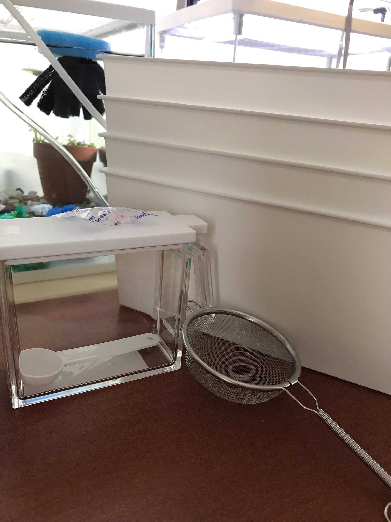 メダカの日常 本日の百均での買い物 百均行くと ついつい買ってしまう 最近よく見る茶こしと餌入れと室内用の稚魚容器 ダイソー 飼育容器 メダカ